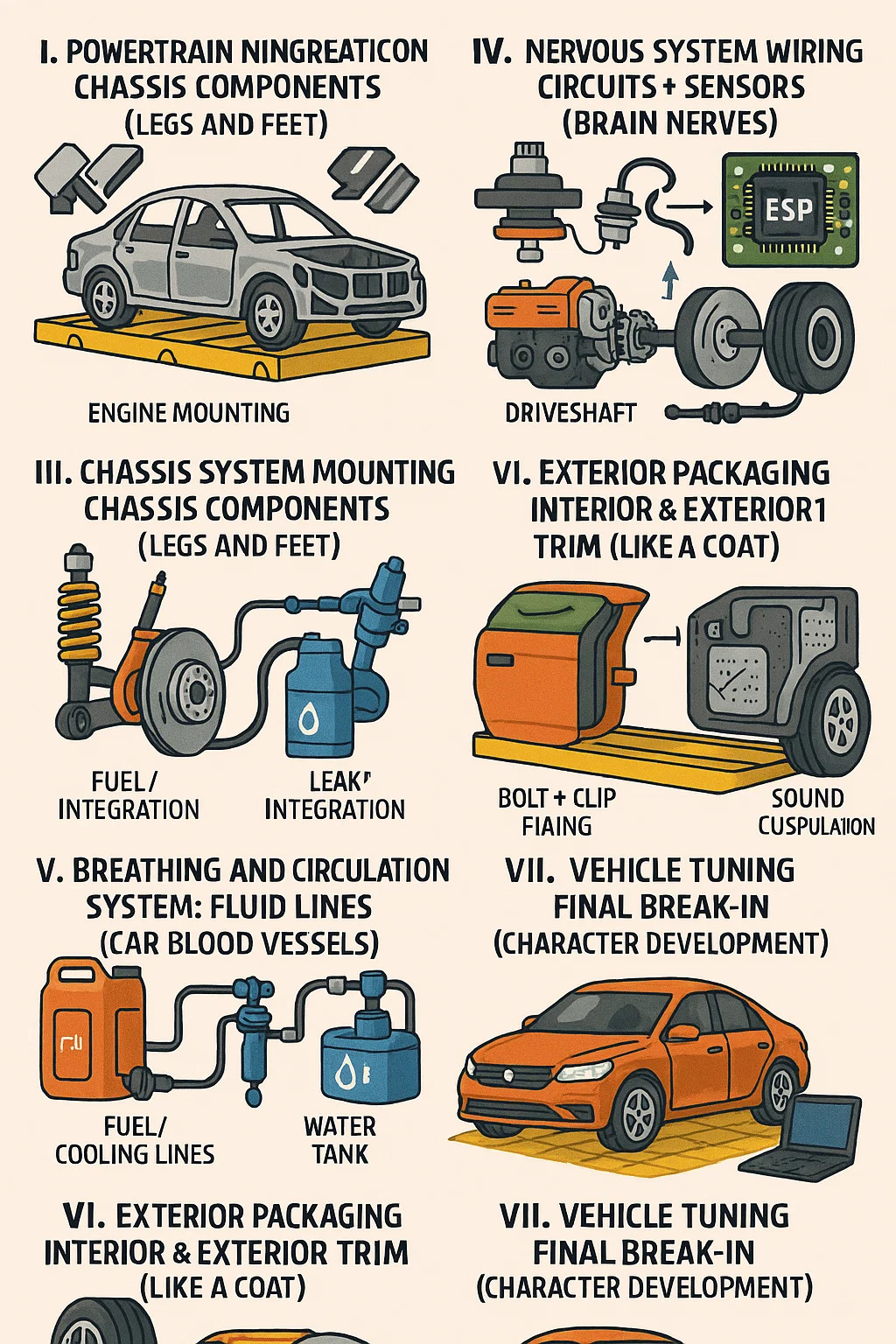Az integráció autóipari alkatrész olyan, mint az építőelemek összeszerelése, az áramkörök csatlakoztatása és az energiaitalok hozzáadása. A különféle alkatrészeket precízen összeszerelik egy összeszerelősoron, így végül mobil acélpartnerré válik.
