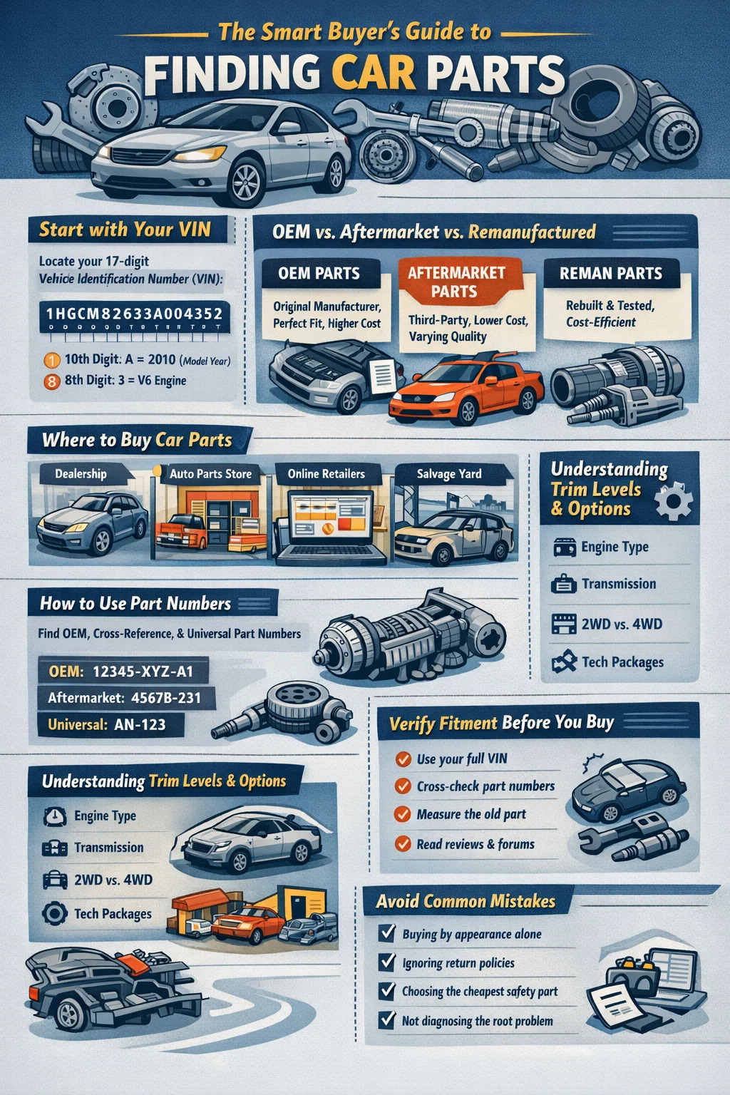 - Olvassa el a termékismertetőket az illesztési megjegyzésekért – Az olyan platformokon, mint az Amazon és a RockAuto, a vásárlói vélemények gyakran jelzik a jármű bizonyos alváltozatainak felszerelési problémáit. Ez különösen hasznos a testrészek és az érzékelők esetében.